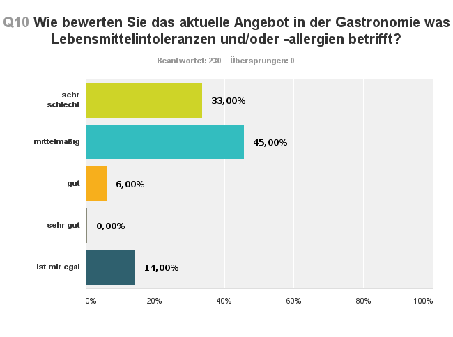 Teilgenommen haben an der Umfrage insgesamt 230 Personen – vielen Dank an dieser Stelle nochmal an alle Teilnehmer und auch an alle, die die Umfrage geteilt haben (u.a. Laura von ich-bin-intolerant.de und Michael Zechmann vom nmi Portal).