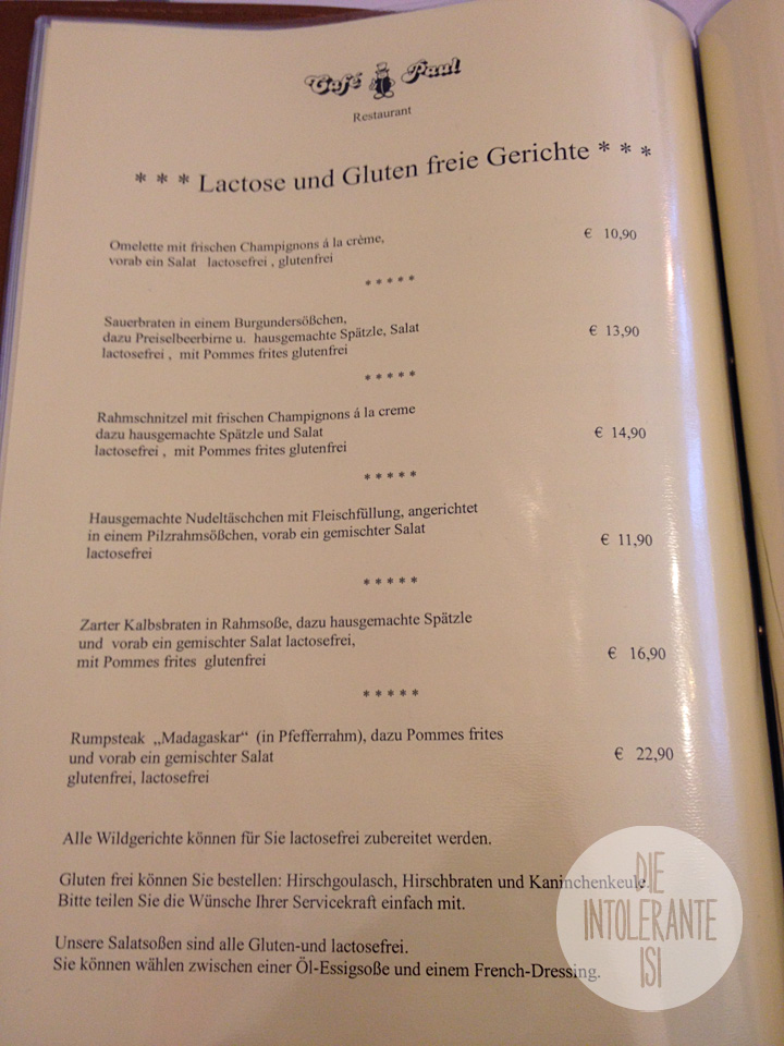Restaurant Café Paul - laktosefreie und glutenfreie Gerichte